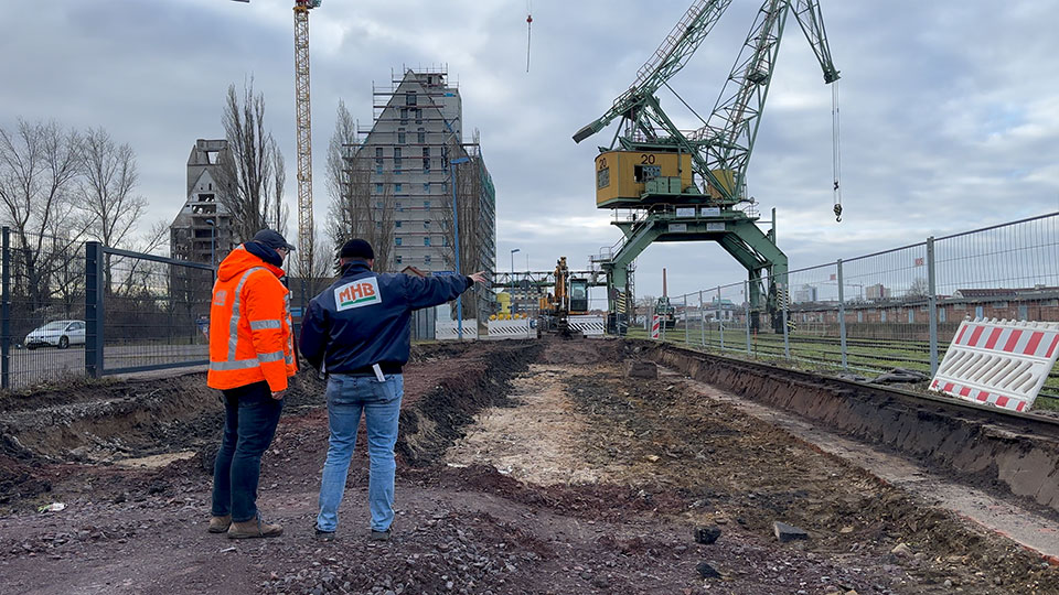 Mit der Untersuchung auf Kampfmittel begann 2017 der Neubau der Strombrücke. MHB war in Sachen Gleisbau dabei. Hier finden Sie Infos, Bilder und Videos zu unserer Arbeit.